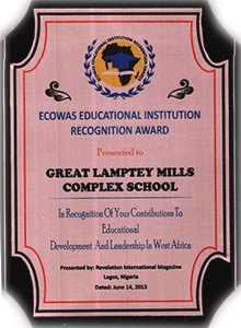 The school has been performing steadily well during its establishments.Great Lamptey-Mills Institute has won several awards from the early Middle School Certificate Examination through to the Common Entrance Examination to the Basic Education Certificate Examination. (B.E.C.E.). Also the school has won many awards through various sporting activities.